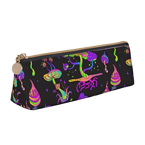 Oudrspo Psychedelic Mushroom Magic Neon Pencil Pouch Triangle Pen Case Portable Pencil Bag Leather Organizer with Zipper Cosmetic Pouch Bag