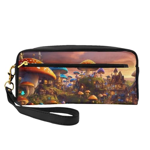 Melbrakin Magic Mushroom Cute Pencil Case,Makeup Bag with Zipper Print Leather for Women Men