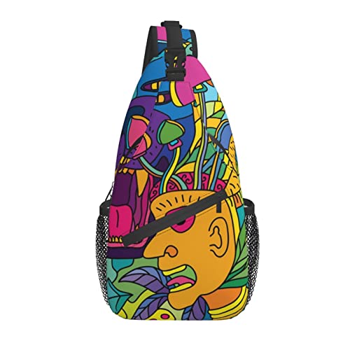 Sling Bag Mushroom Magic Trippy Hiking Daypack Crossbody Shoulder Backpack Travel Chest Pack for Men Women