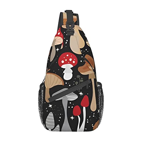 Magic Wild Mushroom Shrooms Sling Bag,Multipurpose Crossbody Shoulder Bags Travel Hiking Chest Backpack for Women Men