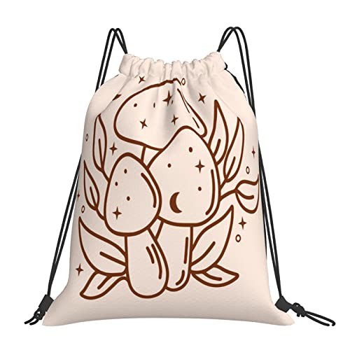 Lsjuee Drawstring Backpack Magic Mushroom Boho Leaf String Gym Bag Pull Cinch Sackpack for Men Women Sport Yoga Travel Swimming