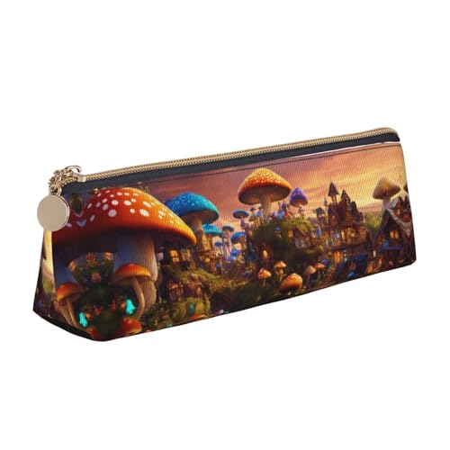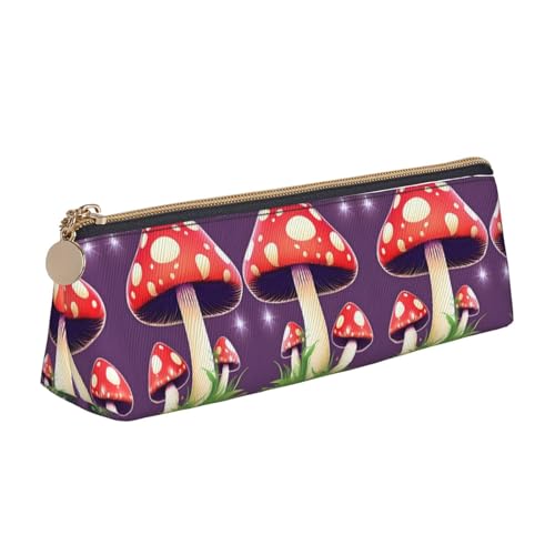SDEGTHO Magic Mushroom Fashion Triangular Leather Zipper Pencil Pouch With Large Storage Capacity Pencil Pouch, White, One Size, Art Deco