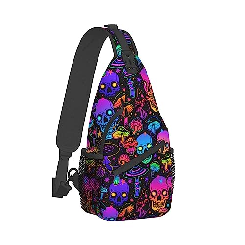 Fashion Sling Backpack, Lightweight Sling Shoulder Bag, Outdoor Chest Crossbody Bike Gym Runner Daypack with Adjustable Strap for Men Women, Compatible with Trippy Magic Mushroom Skulls