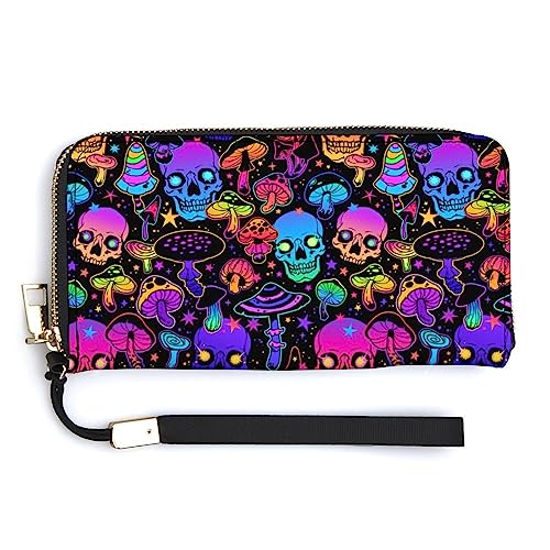 Melbrakin Women's Large Capacity Zipper Handbag Purse for Girls Ladies Cell Phone Case Holster Bag Compatible with Trippy Magic Mushroom Skulls Wallet