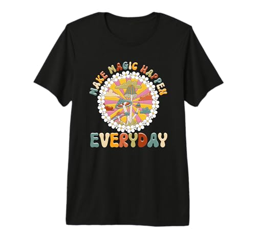 Groovy Make a Magic Happen Everyday Mushroom Botanical Premium T-Shirt