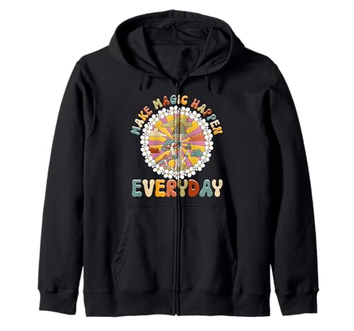 Groovy Make a Magic Happen Everyday Mushroom Botanical Zip Hoodie
