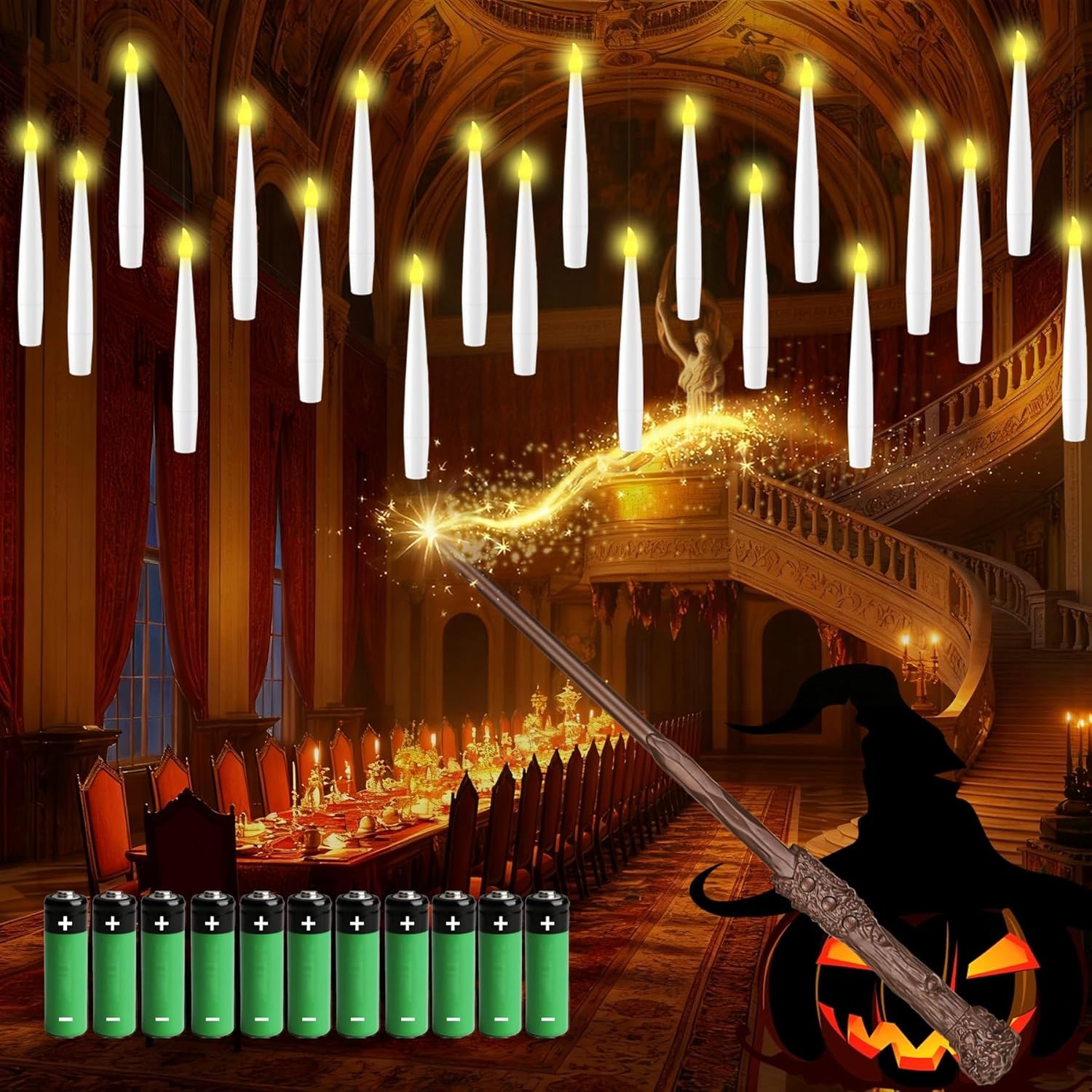 20 Pcs Floating Candles with Magic Wand Remote, Flameless Flickering LED Taper Candles, Warm Light Hanging Candles for Party, Halloween, Christmas Decorations