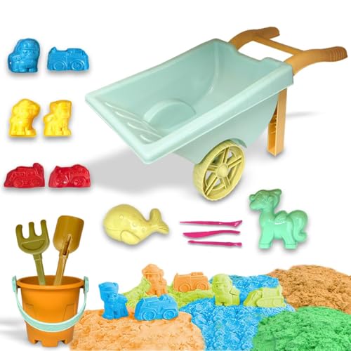 Xwin Sportseries Kids Beach Magic Motion Sand Toy Set With Wheelbarrow, Moulds Tools, Carry Case & Animal Molds for Indoor Outdoor Summer Fun for Kids Age 3+ Above