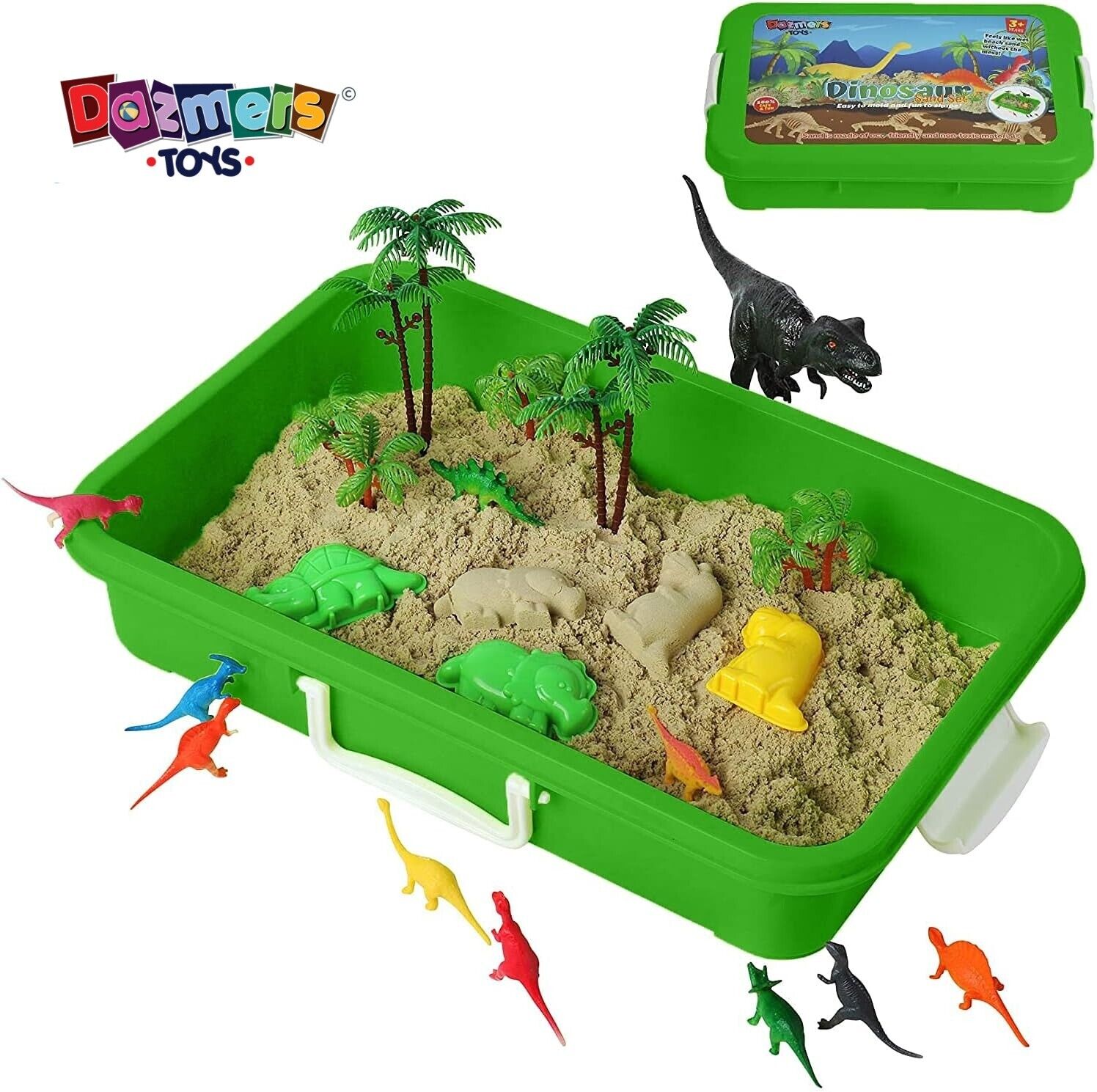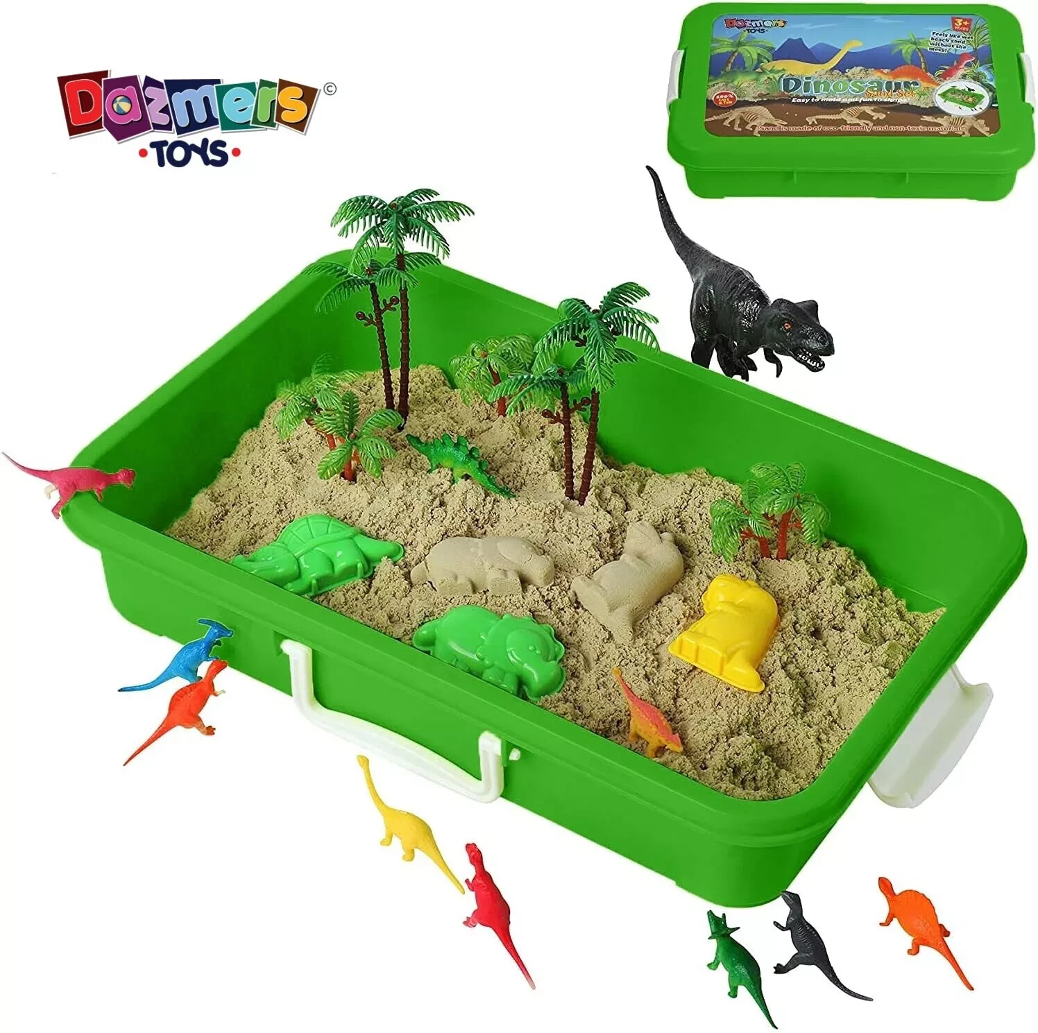 Dinosaur Play Sand Kit Set Magic Sand Fun Sensory Play No Mess Bin With Lid