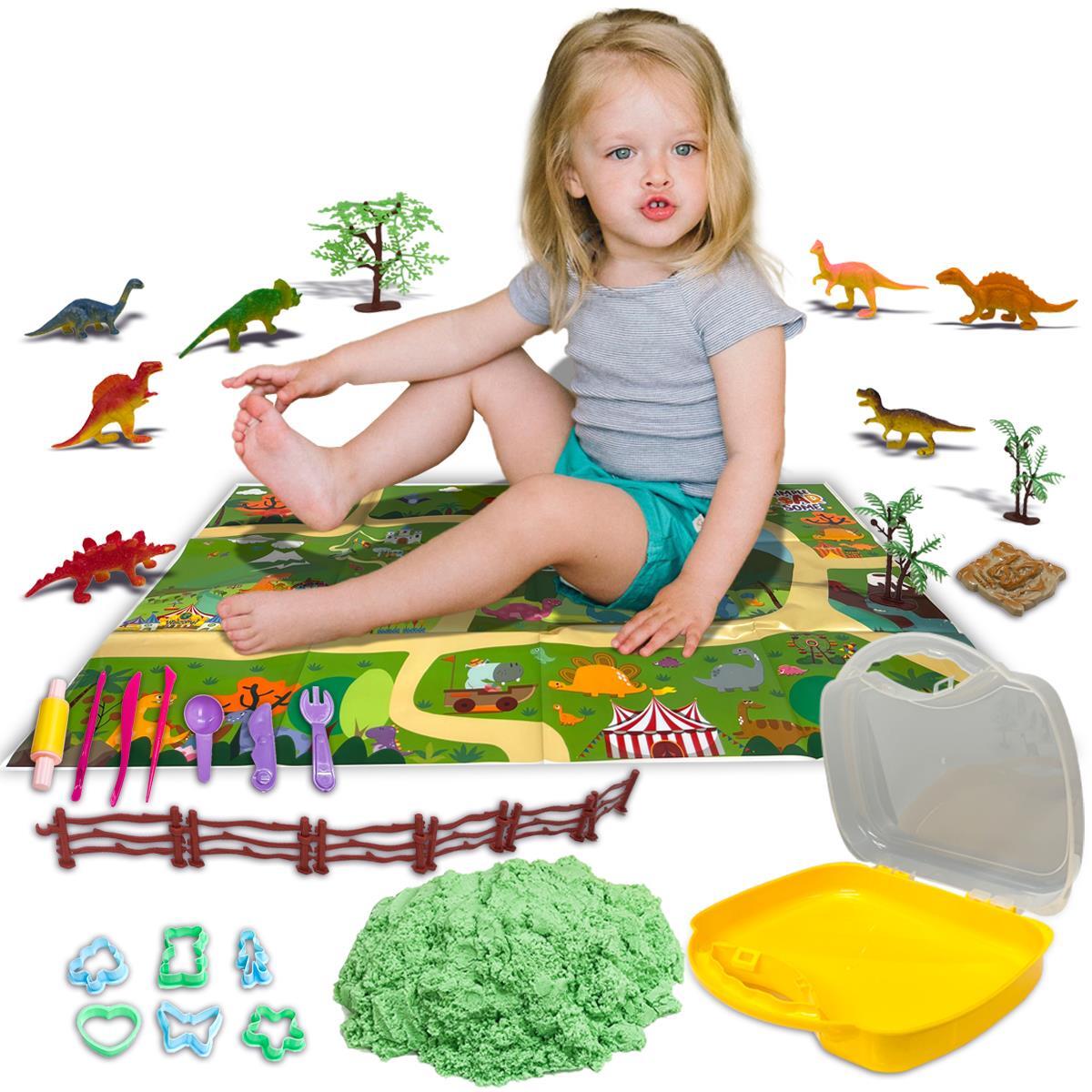 Kids Modelling Sand Magic Dough 7 Pcs Dino Activity Map, Moulds Craft Play Set