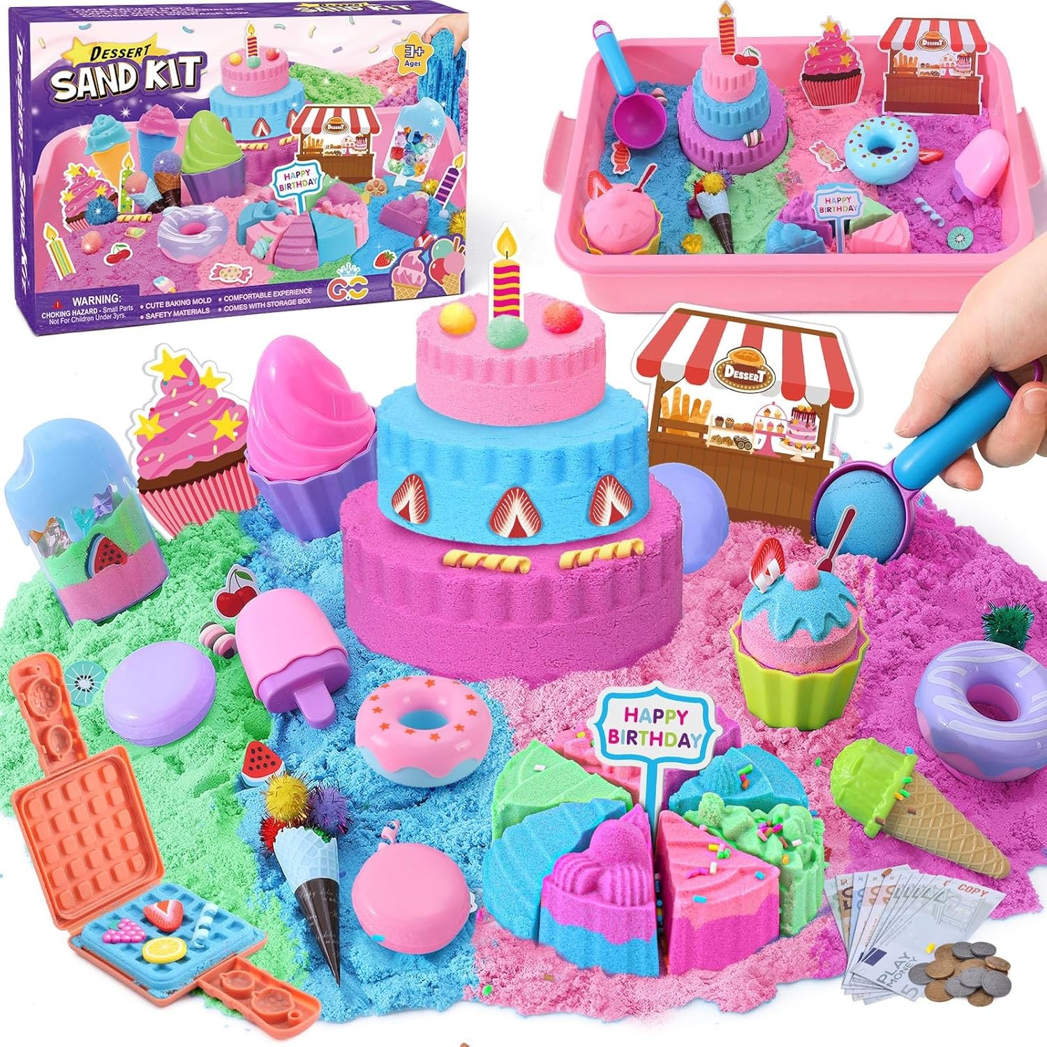 Toyssa Ice Cream Play Sand for Kids with Sandbox Magic Sand Cake Moulds Play Money Ice Cream Toys Kids, Sensory Bin Set Toys Gifts for 3 4 5 6 7 8 Year Old Girls