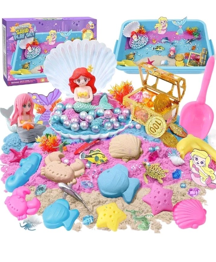 Mermaid Magic Sandbox Kit with 900g Magic Sand, Castle Molds, Gems, Sensory Toys