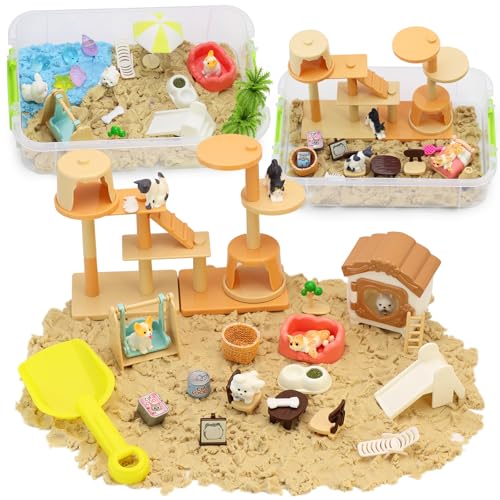 Klever Kits Magic Play Sand for Kids Cute Pet Toys Sandbox with 18 Accessories and Glowing Stones Play Sand Toys for Boys Girls 3 4 5 6 7 8 Year Old Sensory Bin Learning Gifts