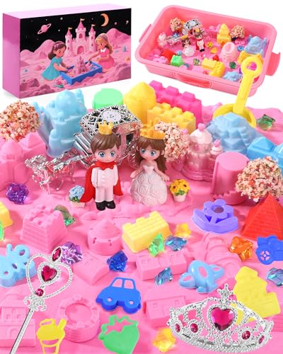 Klever Kits Magic Play Sand for Kids Construction Toys Sandbox with 18 Accessories and Glowing Stones Play Sand Toys for Boys Girls 3 4 5 6 7 8 Year Old Sensory Bin Learning Gifts