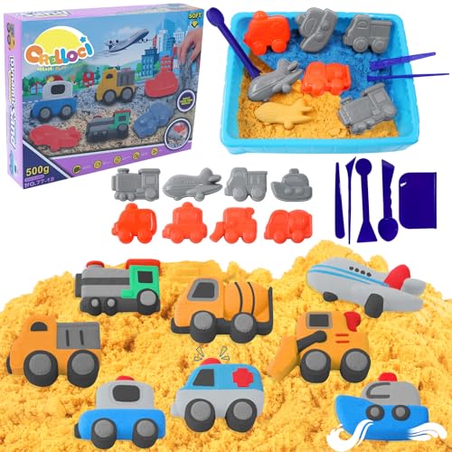 Crelloci Car Magic Play Sand Set for Toddles, Car and Truck Sensory Playset, Sensory Sandbox Kits for Boy Girl Kid Age 3 4 5 6 7