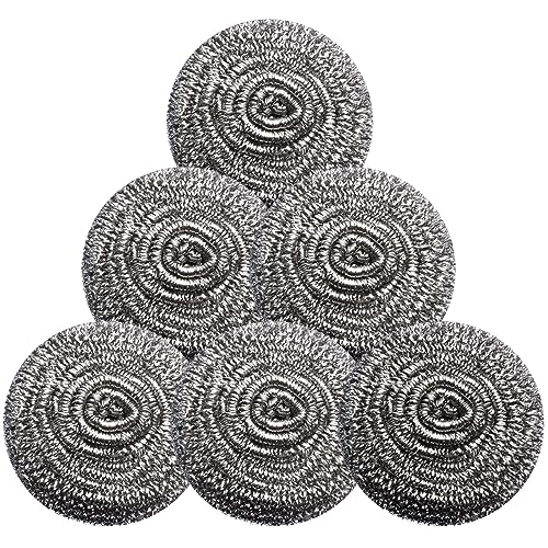 GUEICN Stainless Steel Scrubber Scrubbing Scouring Pad Magic Eraser Sponges Clean Pot Pan and Broiler Rack Steel Wool for Kitchen Bathroom (6Pcs Metal Scrubber)