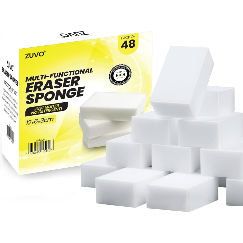 Zuvo Magic Eraser Sponges 48 Pack Heavy Duty Melamine Pads for Cleaning Kitchen and Bathroom