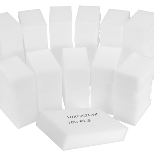 Pack of 100 Magic Eraser Sponges, Premium White Cleaning Sponge Pads Bundle for Household Kitchen Bathroom Floor Wall