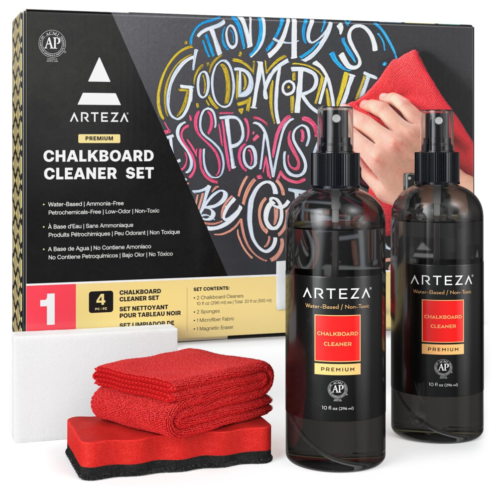 Arteza Chalkboard Cleaner Set with 2 Cleaners 10-Ounces Each 1 Microfiber Fabric Towel 2 Magic Sponges & 1 Magnetic Eraser Office Supplies fo