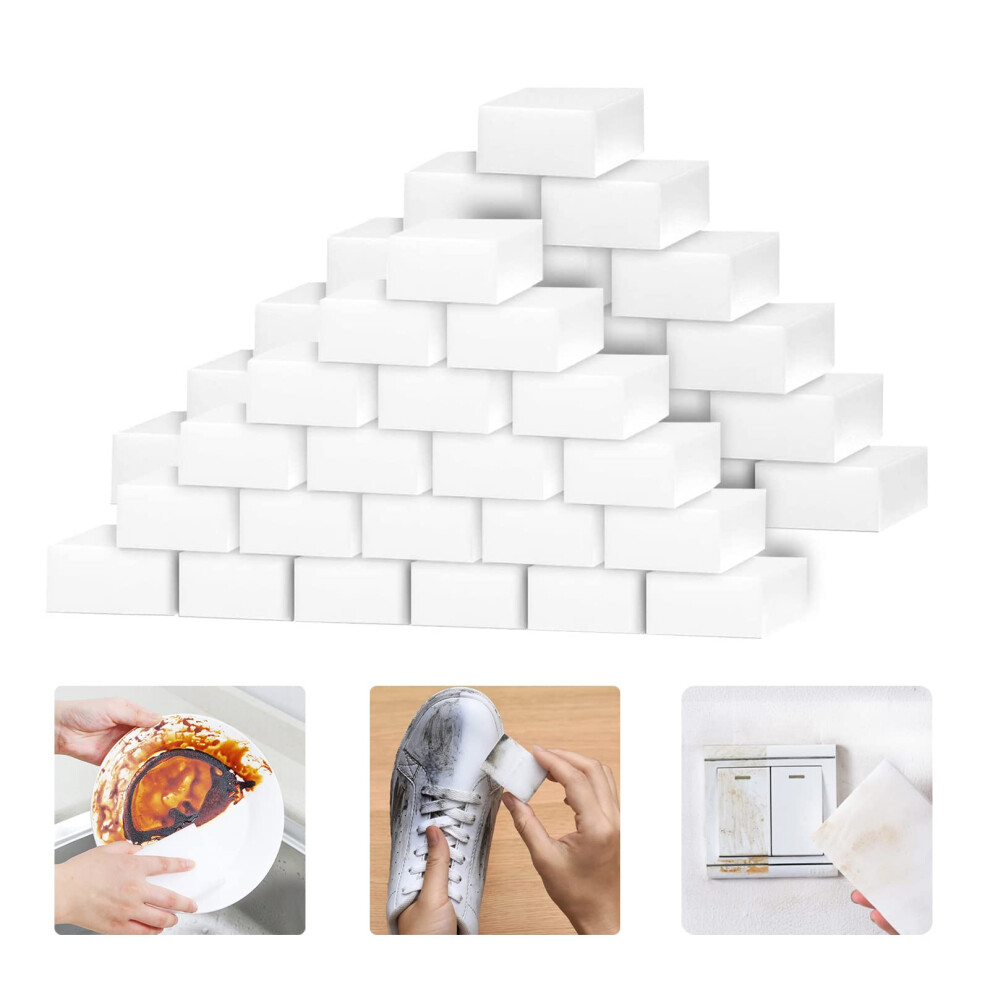 washing Magic Cleaning Sponges Eraser, Household Sponge Eraser Cleaner Foam Cleaning for Kitchen, Furniture, Car, Leathe (50 Pack)