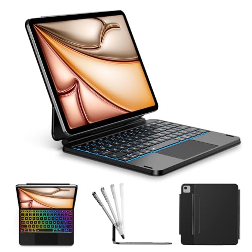 DVWDVW Keyboard Case for iPad Air 11 inch (M3 /M2 2025/2024) & iPad Pro 11 (4th/3rd/2nd/1st Gen), iPad Air 5th/4th Magic Case,Multi-Touch Trackpad,7 Colors Backlight Black