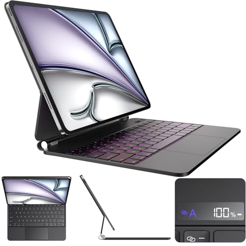 Inateck NeoMagic Magnetic Keyboard Case for iPad Air 13 inch M4 2026/M3/M2, iPad Pro 12.9 inch 6/5/4/3 Gen, Large Multi-Touch Trackpad, LED Power Display,7 Color Backlight, with Pencil Holder, QWERTY