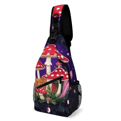 Crossbody Shoulder Backpack Magic Mushrooms Trip Casual Rucksack Unisex Chest Backpack For Camping Travel Cycling 19X39Cm