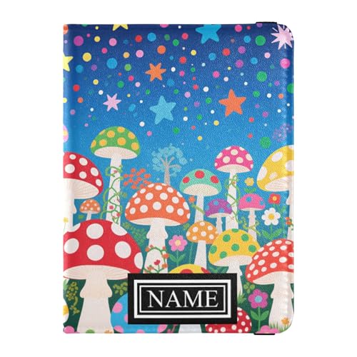 Custom Name Leather Passport Holder for Travel Waterproof Money Holder for Men Trip Accessories Magic Mushroom Scene