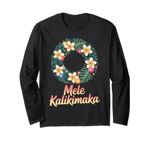 Hawaii Trip Mele Kalikimaka Tropical Floral Wreath Christmas Long Sleeve T-Shirt