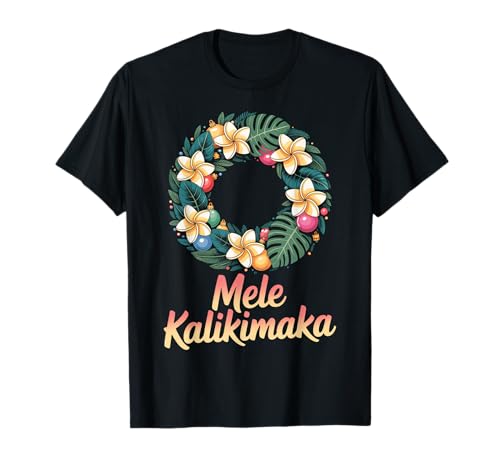 Hawaii Trip Mele Kalikimaka Tropical Floral Wreath Christmas T-Shirt