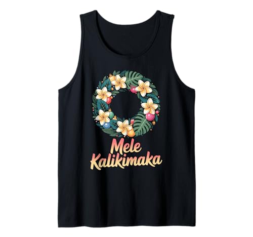 Hawaii Trip Mele Kalikimaka Tropical Floral Wreath Christmas Tank Top