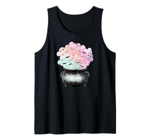 Cute Pastel Cauldron Kawaii Ghost Witchy Bats Magical Wiccan Tank Top