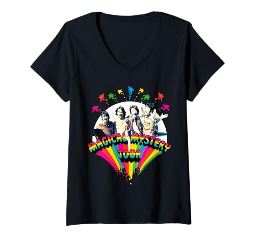 Womens The Beatles - Magical Mystery Tour with Group Members V-Neck T-Shirt
