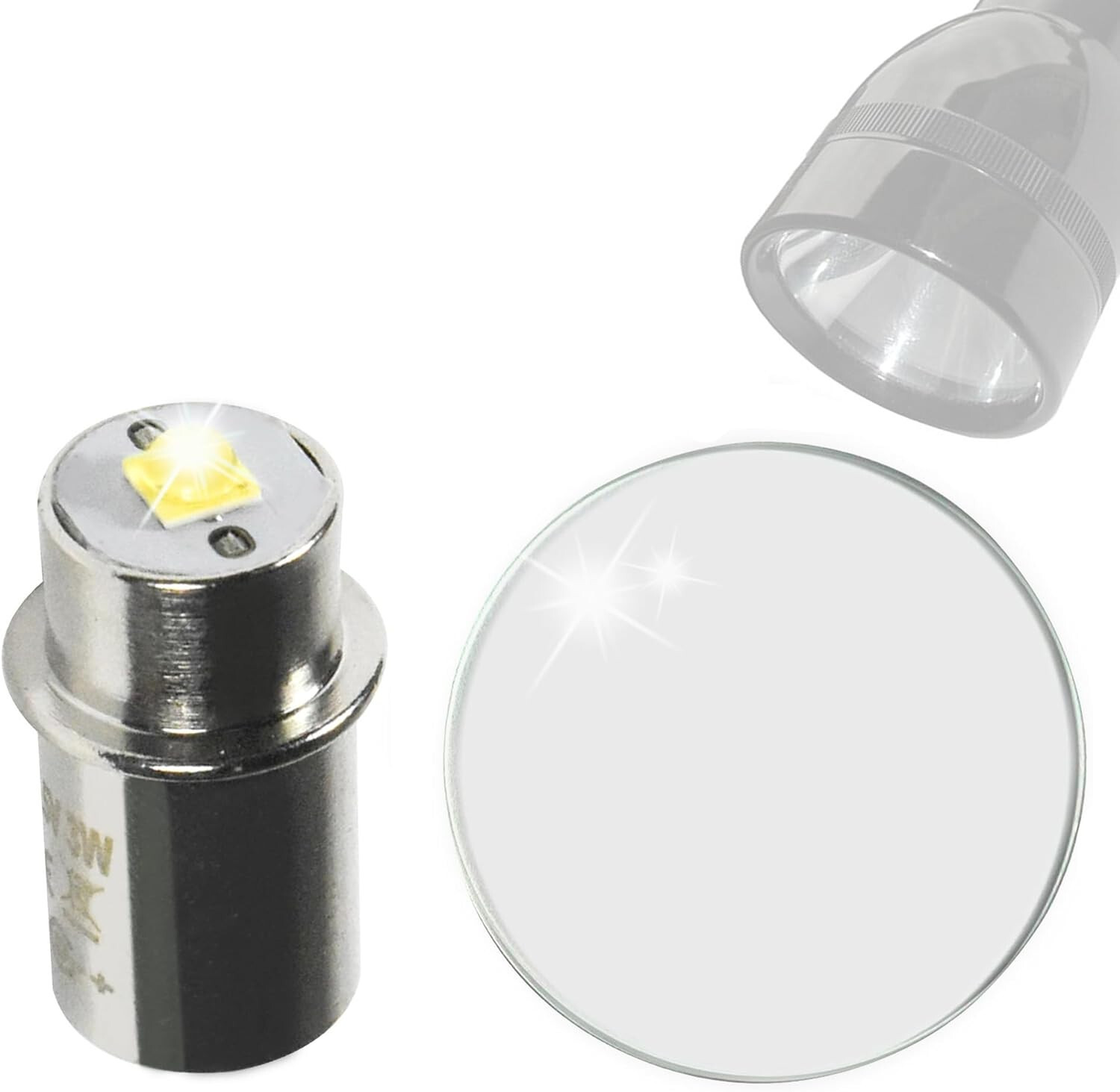 Pure White Light LED Bulb Flashlight Replacement, P13.5S 3W LED Conversion Kit for Maglite Style and Other C D Cell Torches, Energy Efficient Long Las