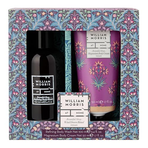 William Morris At Home Body Wash 100ml, Magnesium Body Cream 50ml, Sleep Inducing Fragrance, Glycerin, Lavender and Gentle Exfoliators, Travel Size, Vegan and Cruelty Friendly, Beauty Gift For Her