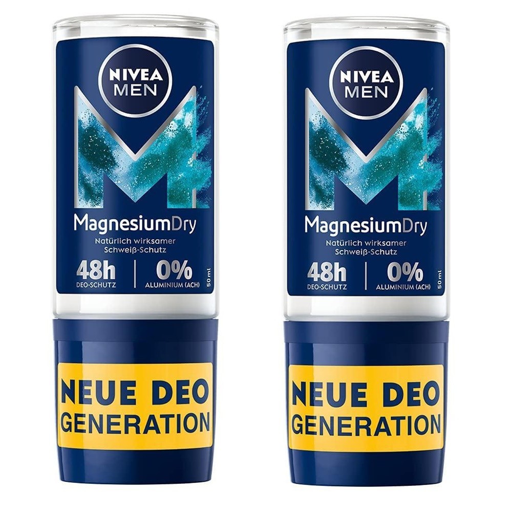 2 x NIVEA MEN Dry Roll-On Deodorant (50 ml) Magnesium 0% Alcohol & Aluminium