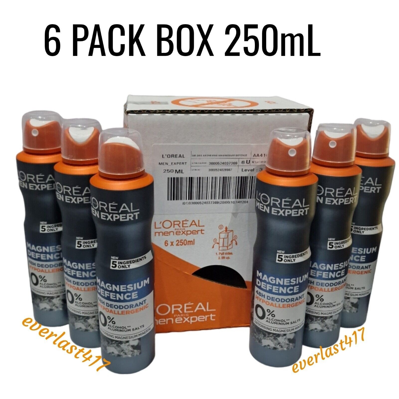 Loreal Men Expert Magnesium Defence Hypoallergenic 48H Deodorant 250ml ~ 6 PACK