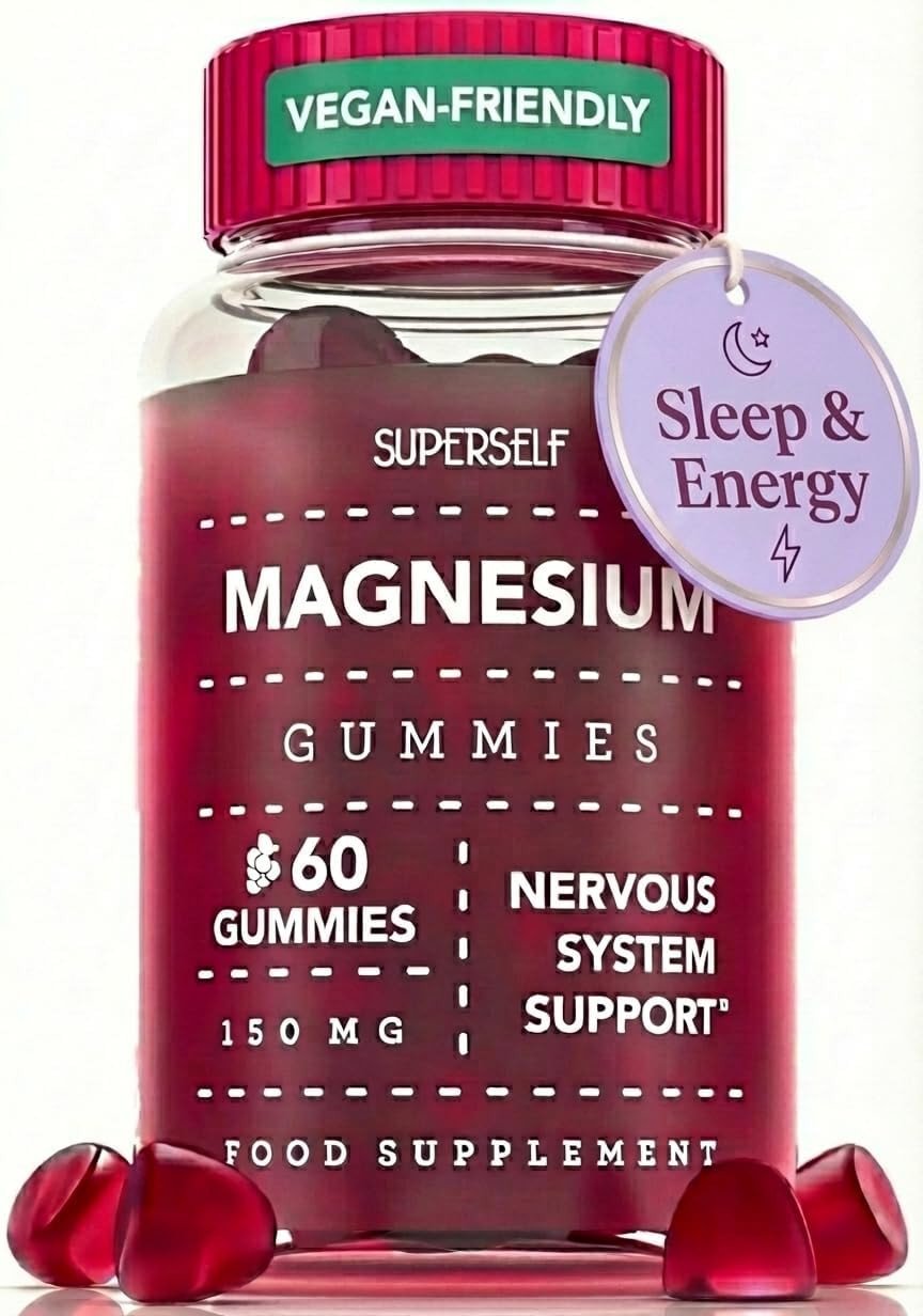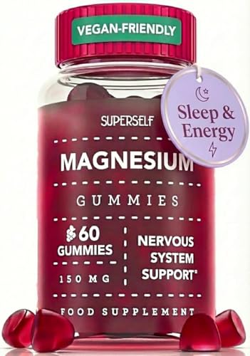 Magnesium Gummies for Adults & Kids - 150mg Magnesium Supplements for Sleep, Relaxation & Muscle Support - Natural Grape Flavour - No Artificial Colours - Vegan - 60 Gummies Easy to Chew
