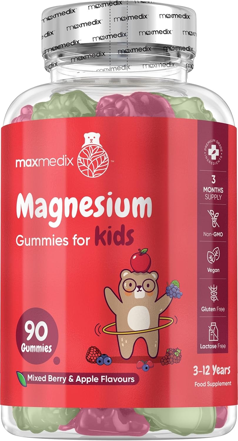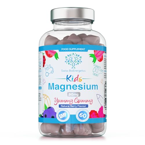 Magnesium Gummies – Kids Formulation, Providing 90mg of Elemental Magnesium from Citrate - 60 Natural Berry Flavour Chewable Yummy Gummies for Muscle and Nerve Support - up to 2 Month Supply - UK