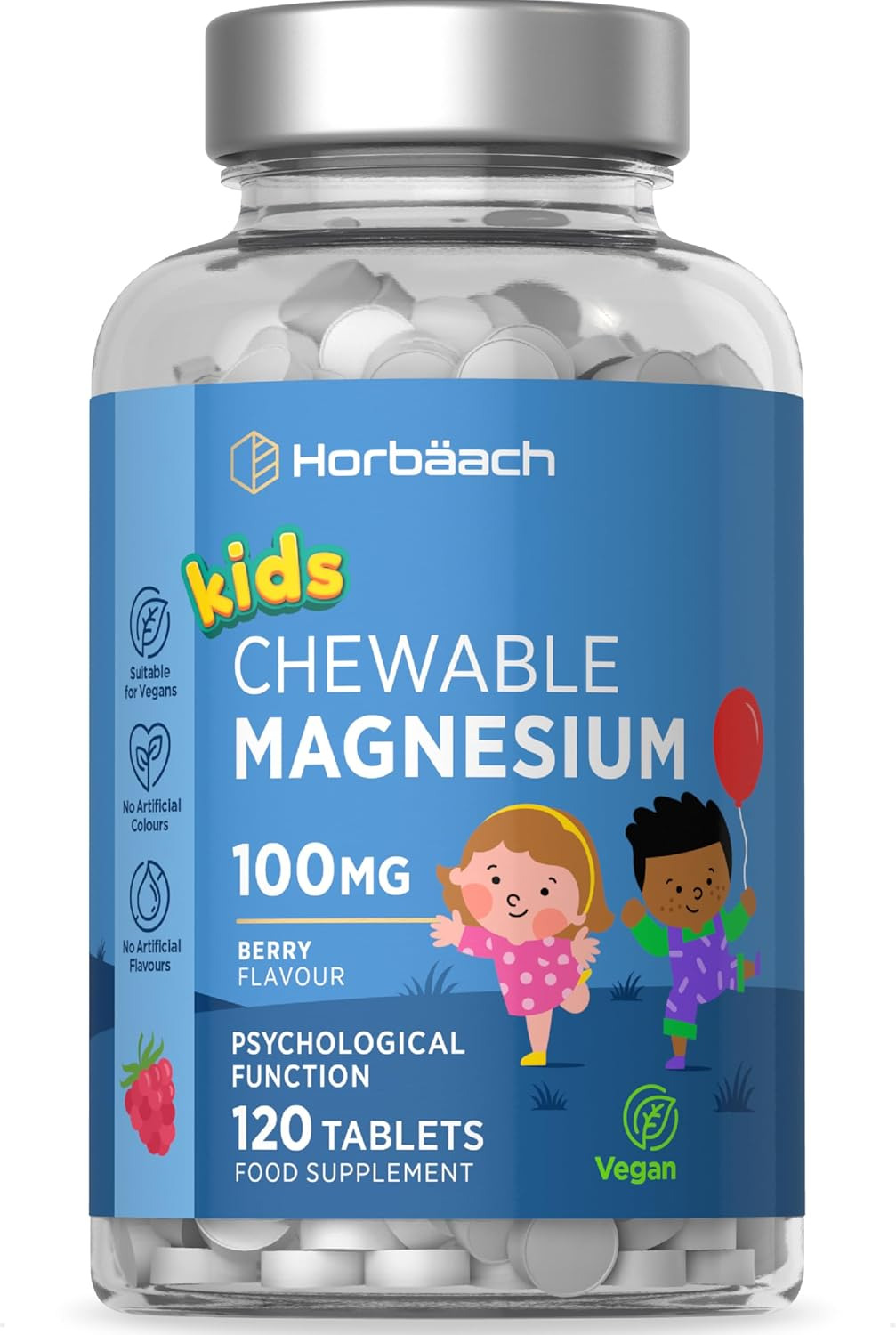 Kids Magnesium Tablets | 100Mg | 120 Chewable Tablets | Berry Flavour Vegan Supp