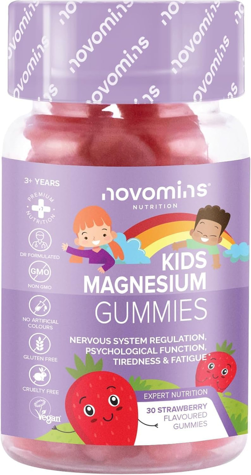 Kids Magnesium Gummies - 546 Mg Magnesium Citrate Providing 60 mg of Magnesium - Alternative to Magnesium Glycinate – 30 Gummies - 1 Month Supply Magnesium Supplements - Vegan - Gluten Free - Novomins