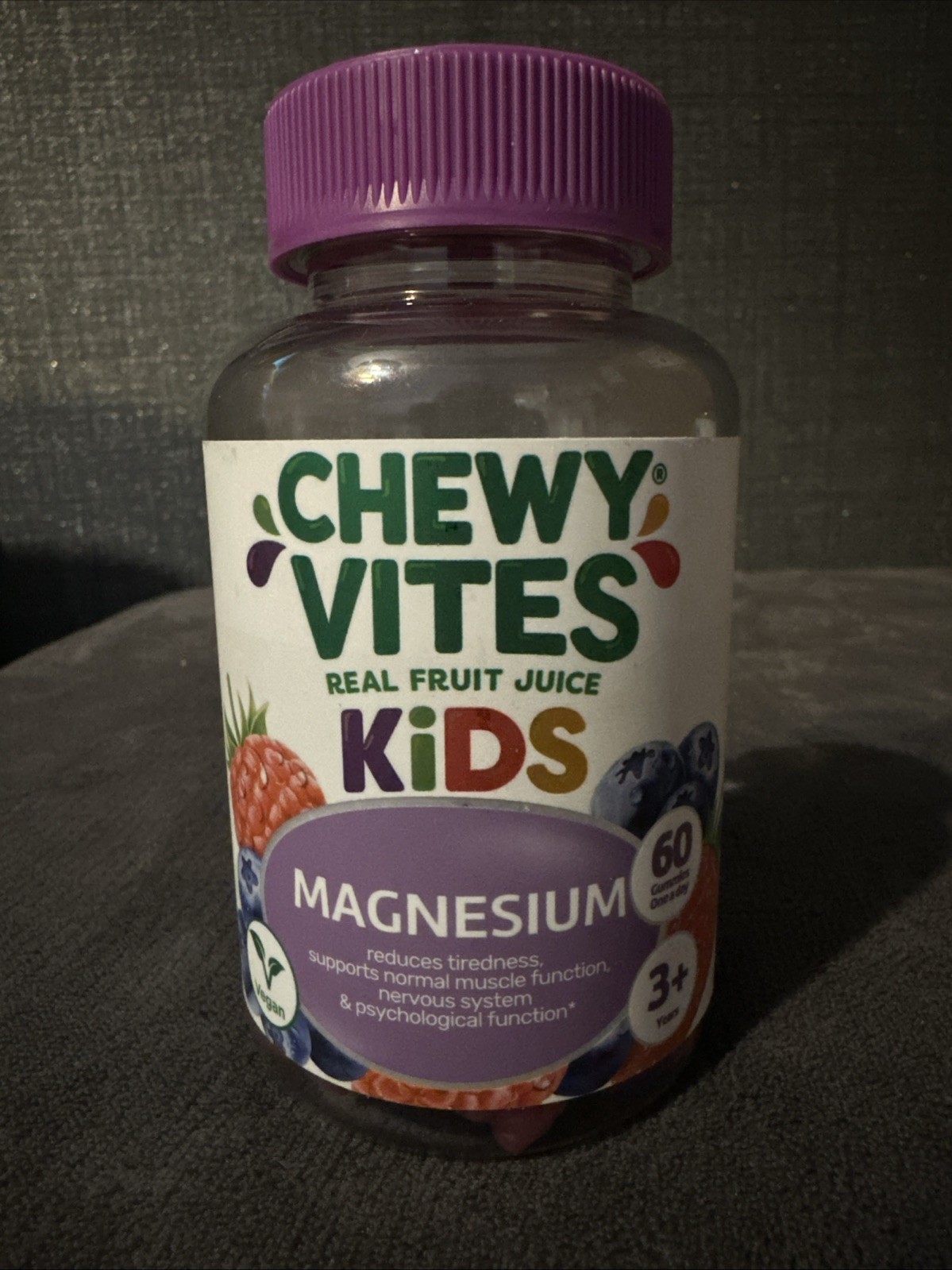Chewy Vites Kids Magnesium, 2 Months Supply, 60 Kids Vitamins Gummies, 500mg Magnesium Citrate Providing 56mg per Gummy, Real Fruit Juice, Age 3 +, Berries Flavour