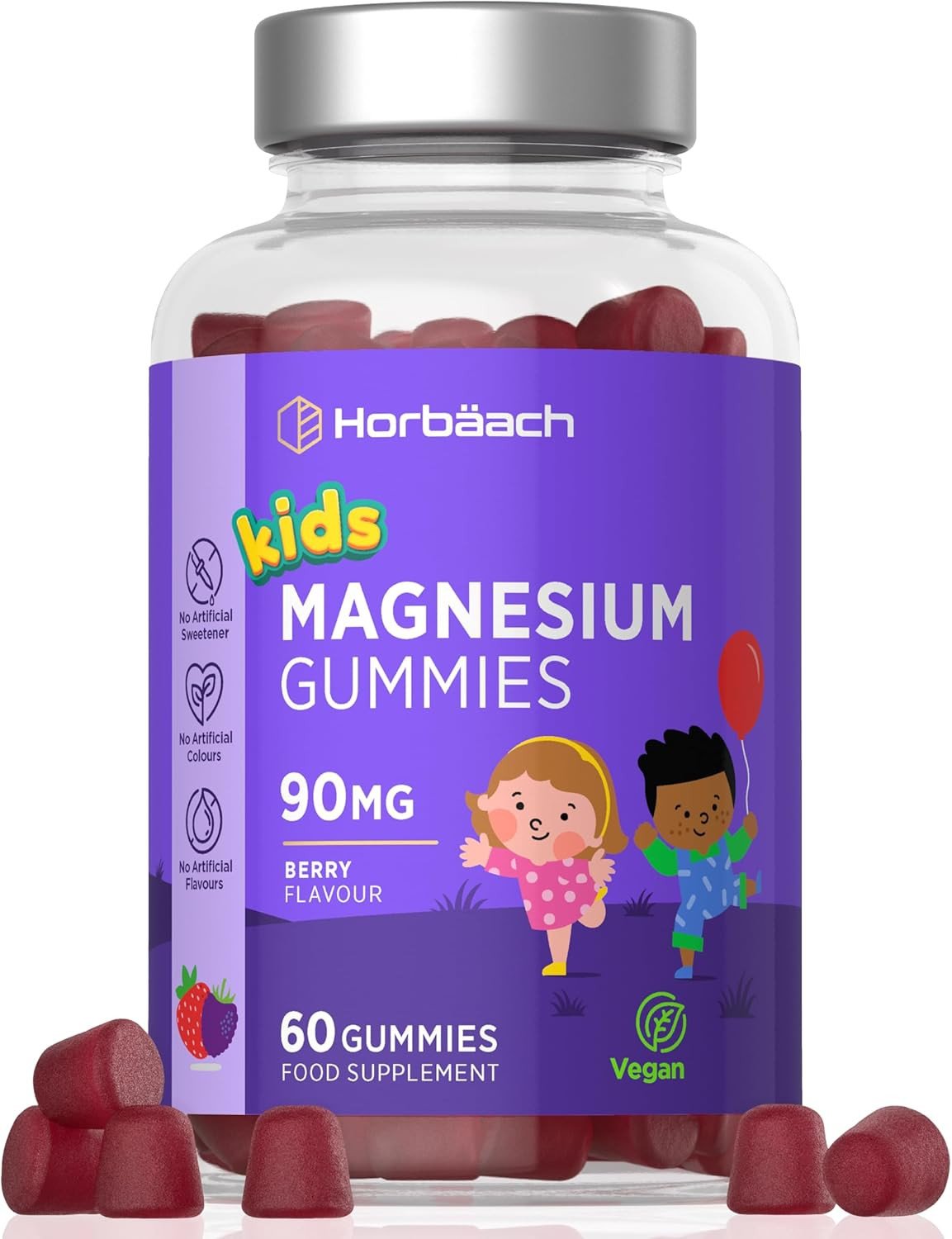 Kids Magnesium Gummies – 90 Vegan Gummies for Calm, Sleep & Muscle Support