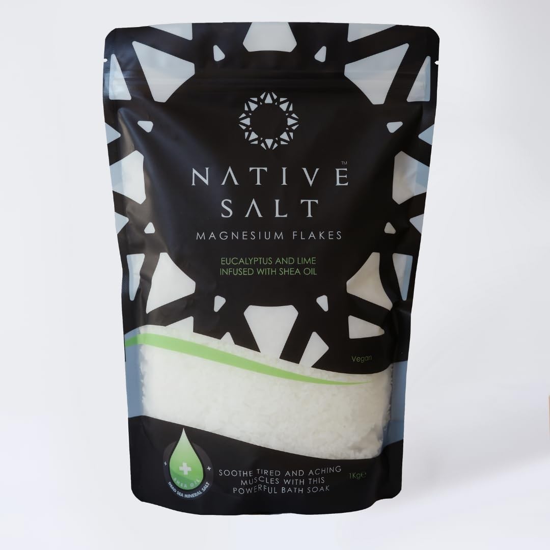 Native Salt: Magnesium Bath Flakes Eucalyptus & Lime, Infused with Shea Oil, Na