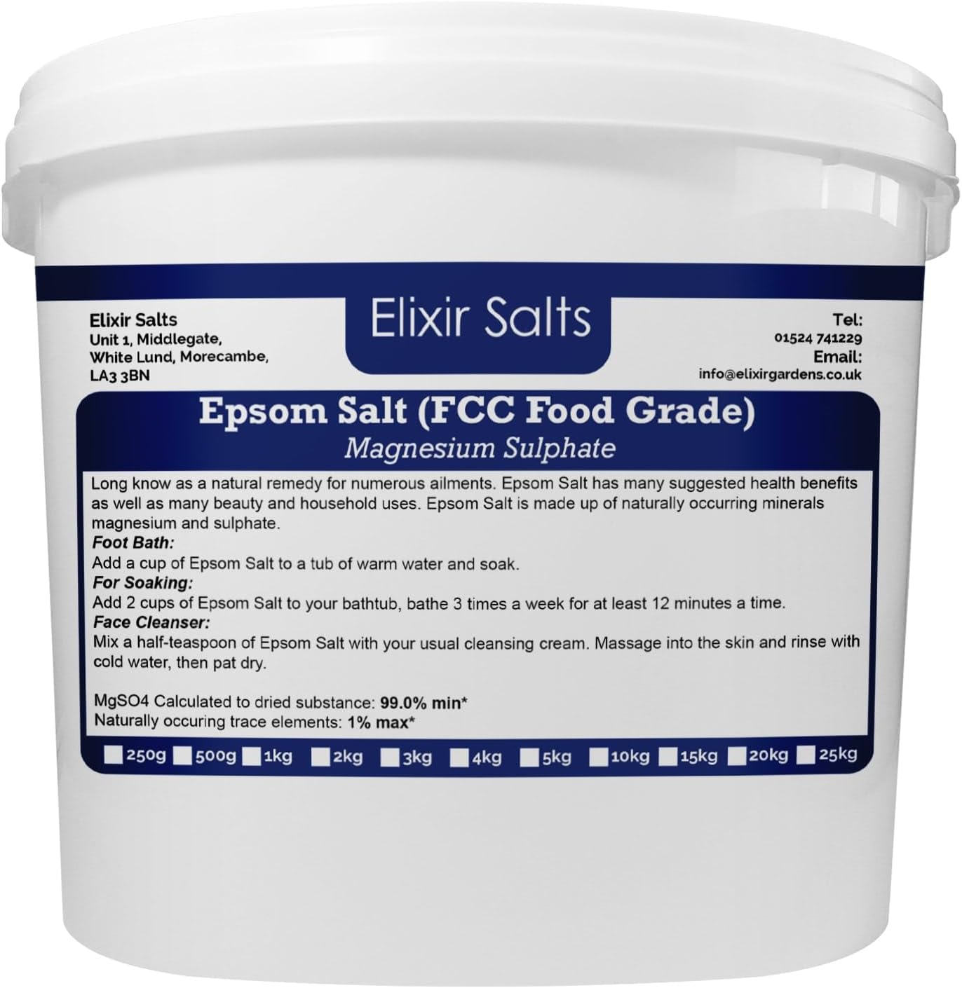 Elixir Salts Epsom Salt Magnesium Sulphate Food Grade | 10Kg Supplied in a Tub