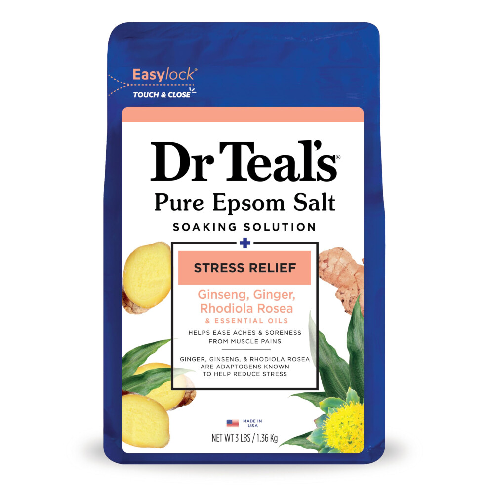 Dr Teal's Pure Epsom Magnesium Salt Soak, Stress Relief with Essential Oils, 3lbs