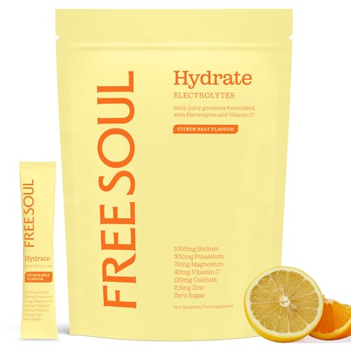 Free Soul Hydrate | Electrolyte Hydration Sachets | Zero Sugar | 30 Sachets | Advanced Electrolyte Powder with Sodium, Magnesium, Vitamin C | Citrus Salt Flavour
