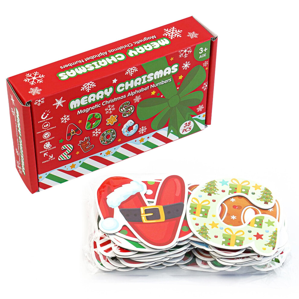 Magnetic Alphabet Letters and Numbers Set Christmas Cartoon Design Educational Fridge Magnets for Kids
