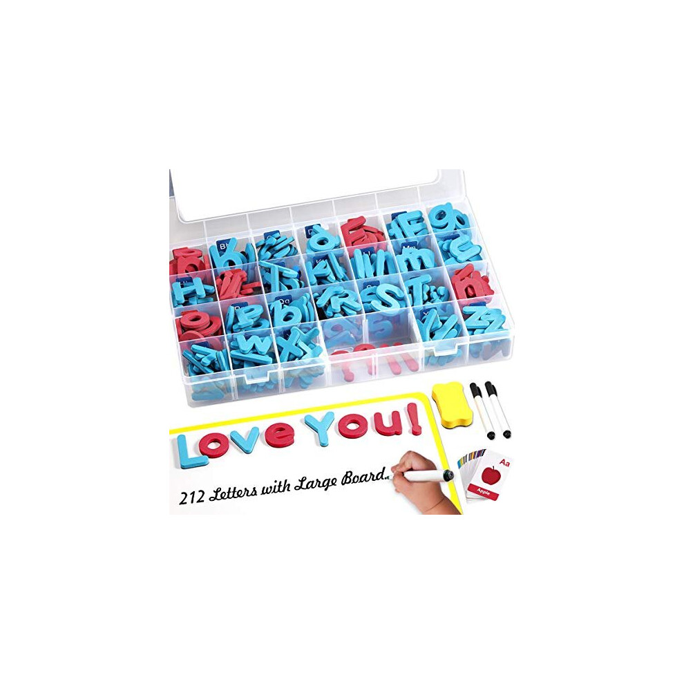 Magnetic Alphabet Letters, 212Pcs A-Z Foam Magnetic Letters and Symbols with large Dry Erase Double-Side Magnetic Board, Educational Alphabet Ref