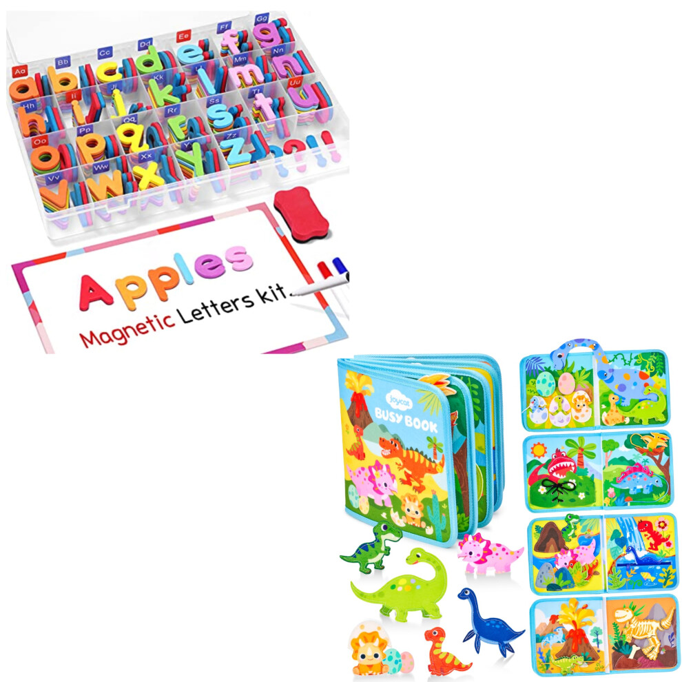 2 in 1 Toddler Busy Book with Magnetic Alphabet Letters, Dinosaur Learning Toy for Kids Ages 14